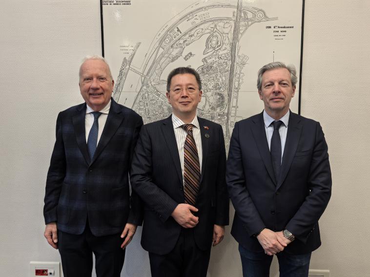 le 14 mars, monsieur yu jiang, consul général de chine à lyon, accompagné de monsieur li zhenping, consul général adjoint, a rencontré monsieur pascal blache, maire du 6e arrondissement de lyon, et m. christian termoz-mazan, 1er adjoint au maire.