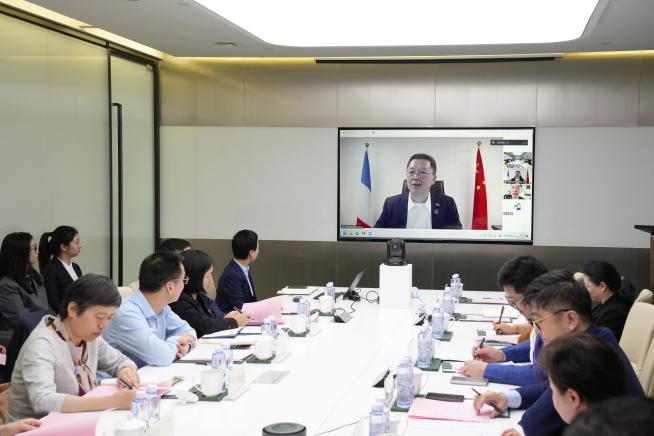le 26 mars 2025, monsieur yu jiang, consul général de chine à lyon,a participé en ligne à l’échange entre le nouvel institut franco-chinois et le district de gulou de la ville de nanjing. monsieur guillaume arnould, directeur-général du nifc, monsieur fang jing, chef du district de gulou, madame jin xuechun, cheffe adjointe du district, monsieur feng quan, vice-président permanent du comité provincial du jiangsu de la ligue démocratique de chine, monsieur wang dongning, directeur du bureau de promotion des investissements de nanjing, et monsieur xia yan, directeur adjoint du bureau des affaires étrangères de nanjing étaient présents.