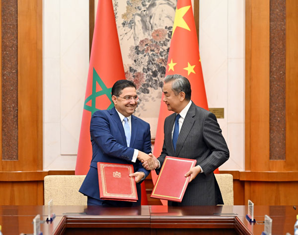 le maroc a été l’un des premiers pays arabes et africains à établir des relations diplomatiques avec la république populaire de chine, a rappelé wang yi. sous la direction stratégique des dirigeants des deux pays, les relations sino-marocaines ont connu un développement de haut niveau, avec des résultats remarquables dans divers domaines de coopération, renforçant ainsi le partenariat stratégique, a-t-il ajouté. l’année prochaine marquera le 10e anniversaire de l’établissement du partenariat stratégique entre la chine et le maroc. la chine est disposée à travailler avec le maroc pour poursuivre l’engagement initial pris lors de l’établissement de relations diplomatiques, maintenir des échanges de haut niveau, planifier la coopération dans divers domaines et ouvrir conjointement un avenir plus radieux pour les relations sino-marocaines et les relations sino-arabes, a affirmé wang yi.