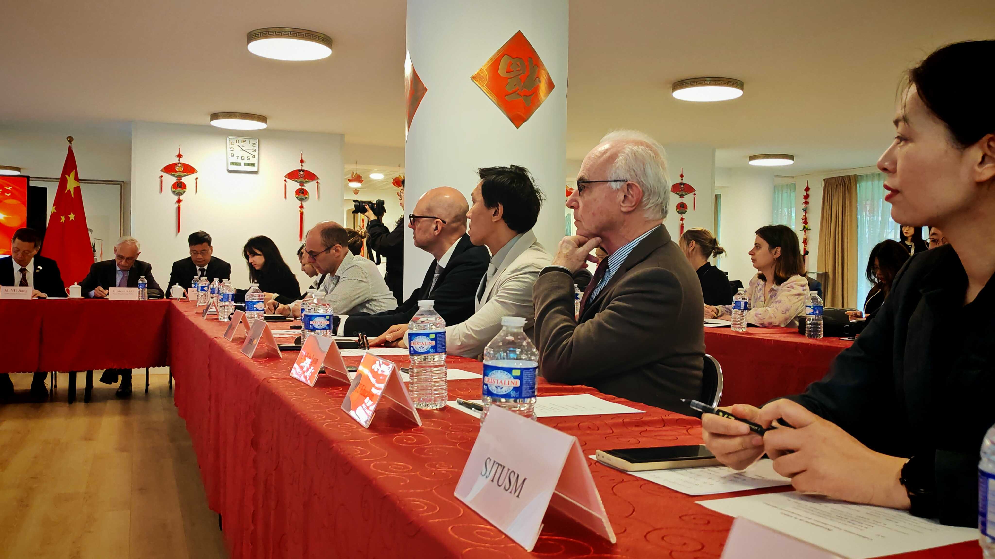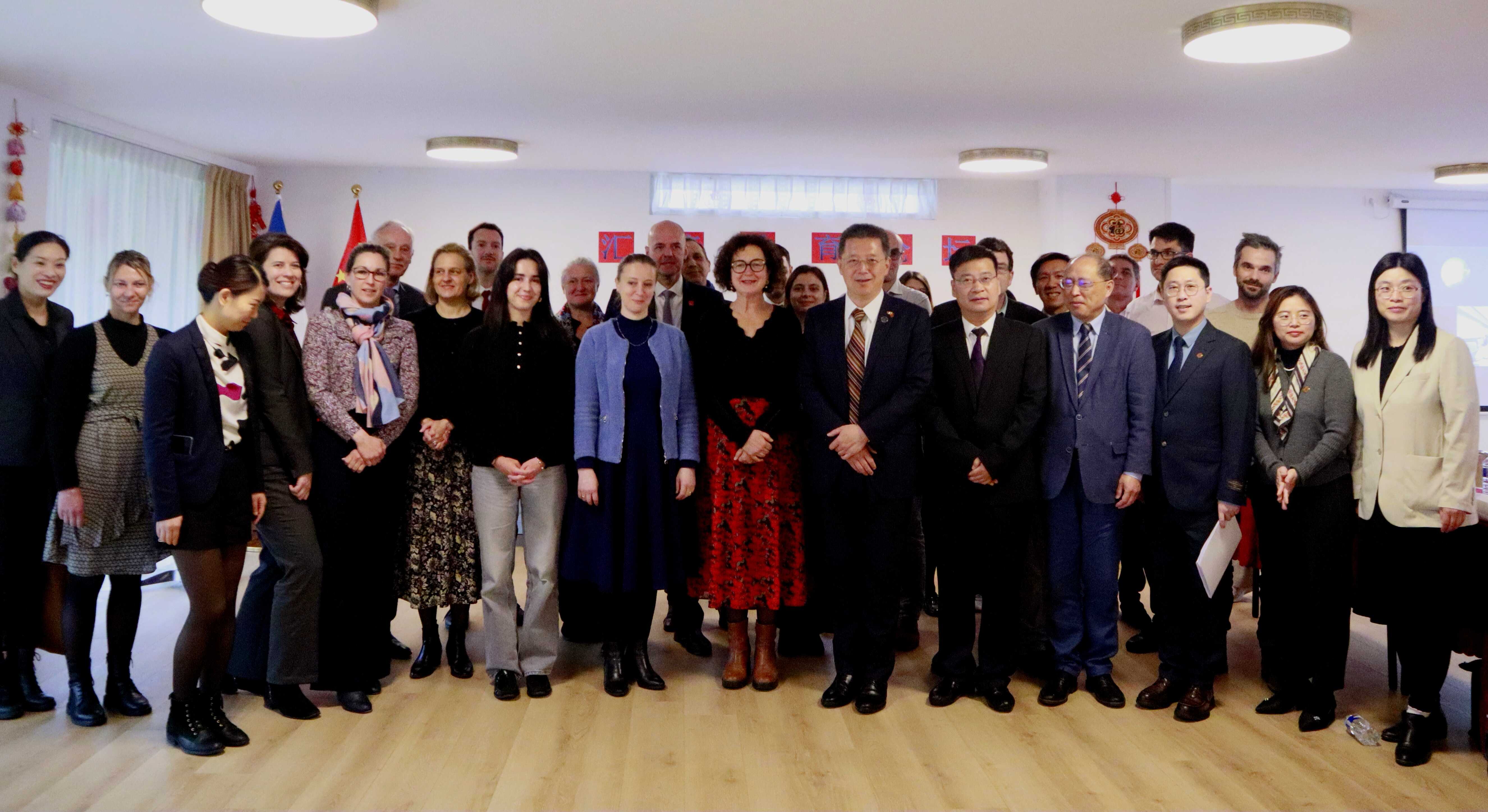 这一天,由驻法国使馆、驻里昂总领馆和新中法大学协会主办的首届汇流教育论坛在驻里昂总领馆举行。驻里昂总领事于江、里昂大学联盟副主席薄思敏、新中法大学协会副主席拉巴特,以及江苏省农业代表团、奥罗阿大区议会代表等出席本次活动。来自北京、上海、广州、南京、武汉等国内城市30余所高校和里昂所在的奥罗阿大区20余所高校及科研机构共百余名代表线上线下齐聚一堂,展开一场关于深化中国有关城市和法国奥罗阿大区教育合作的热烈讨论。