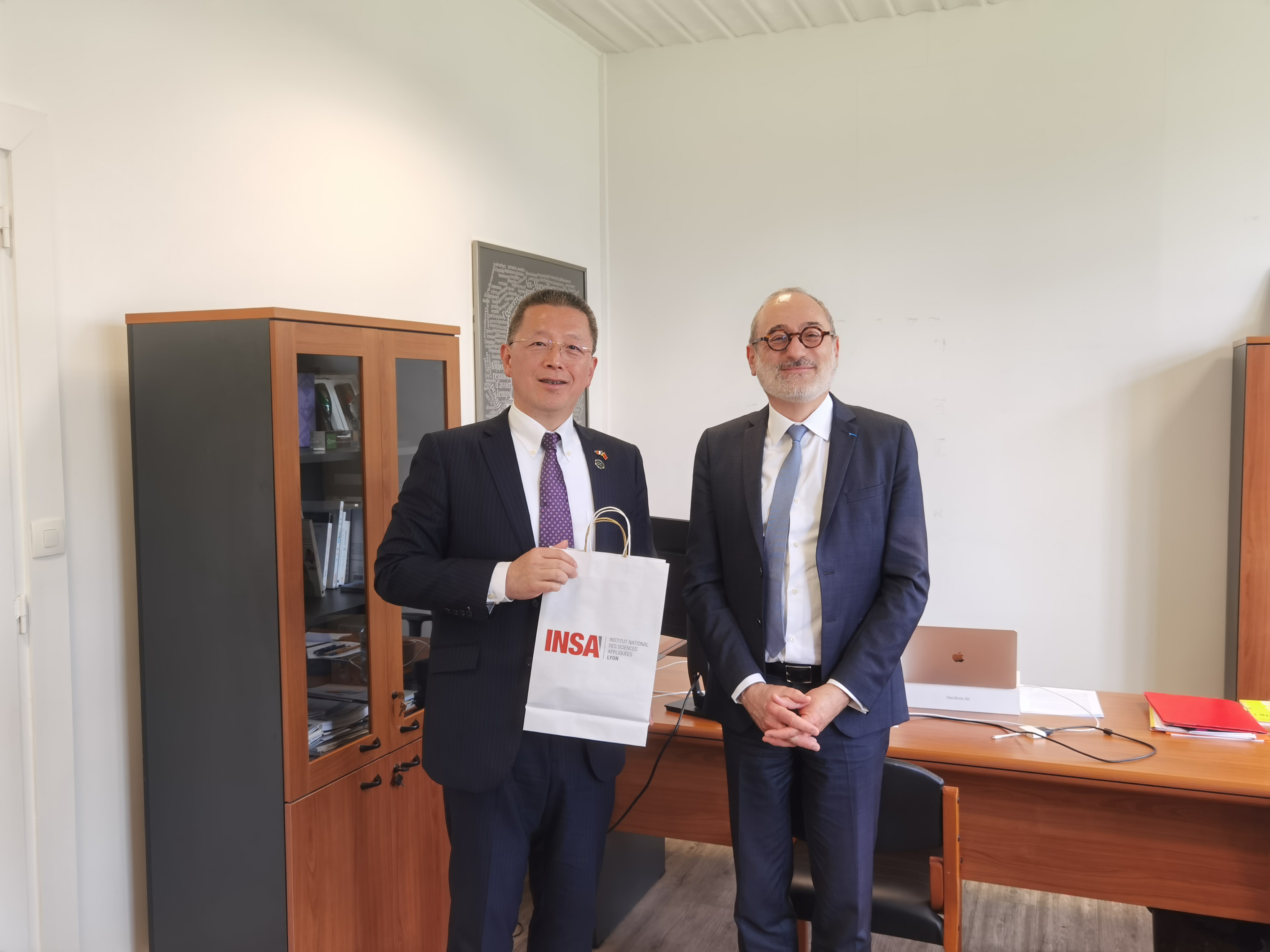 2025年4月24日,驻里昂总领事于江应邀访问里昂国立应用科学学院并会见校长弗提亚都。
