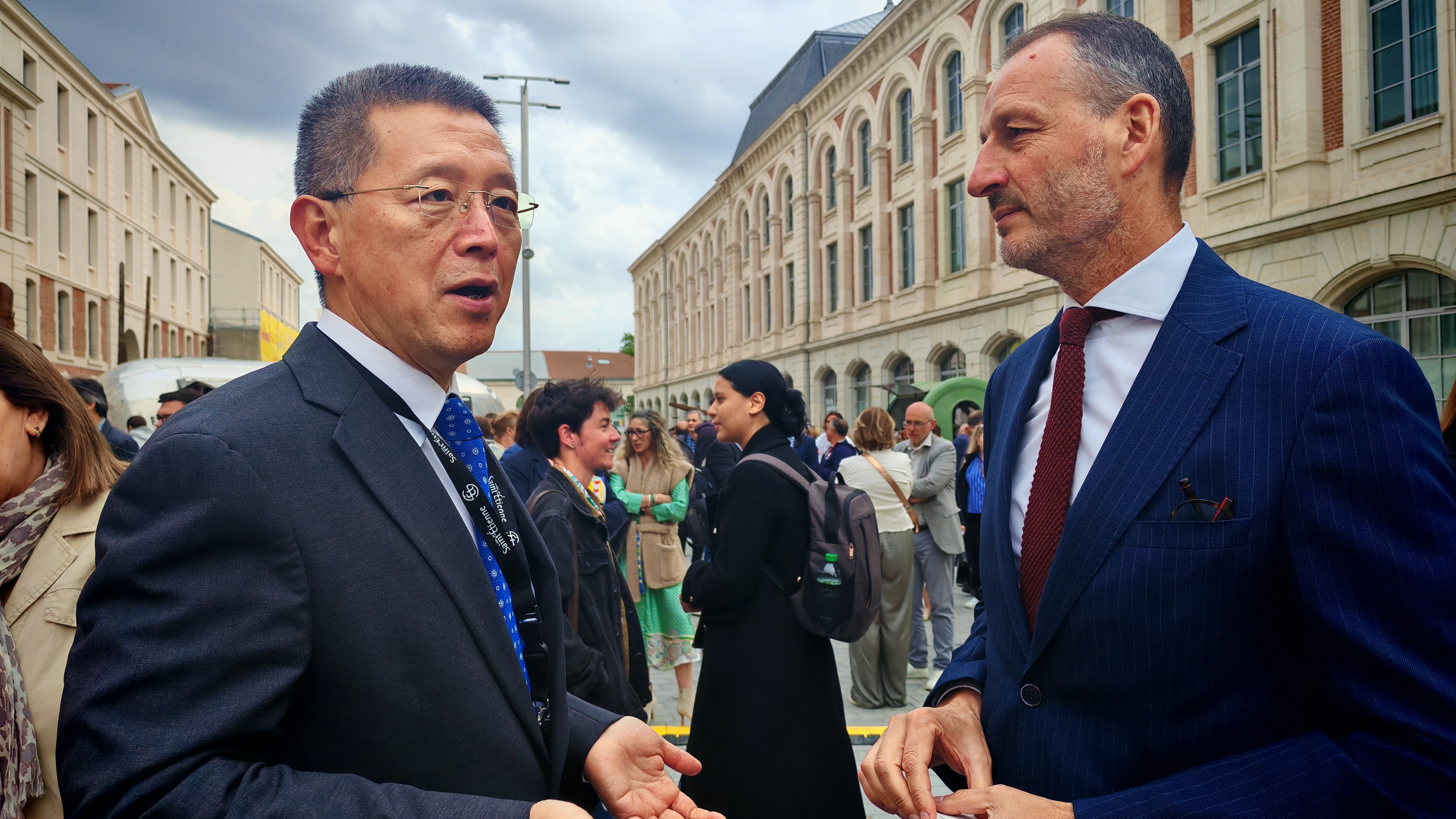 于总并出席圣埃蒂安国际设计双年展开幕式,与卢瓦尔省省长罗夏特就加强双方互利合作进行了友好交流。