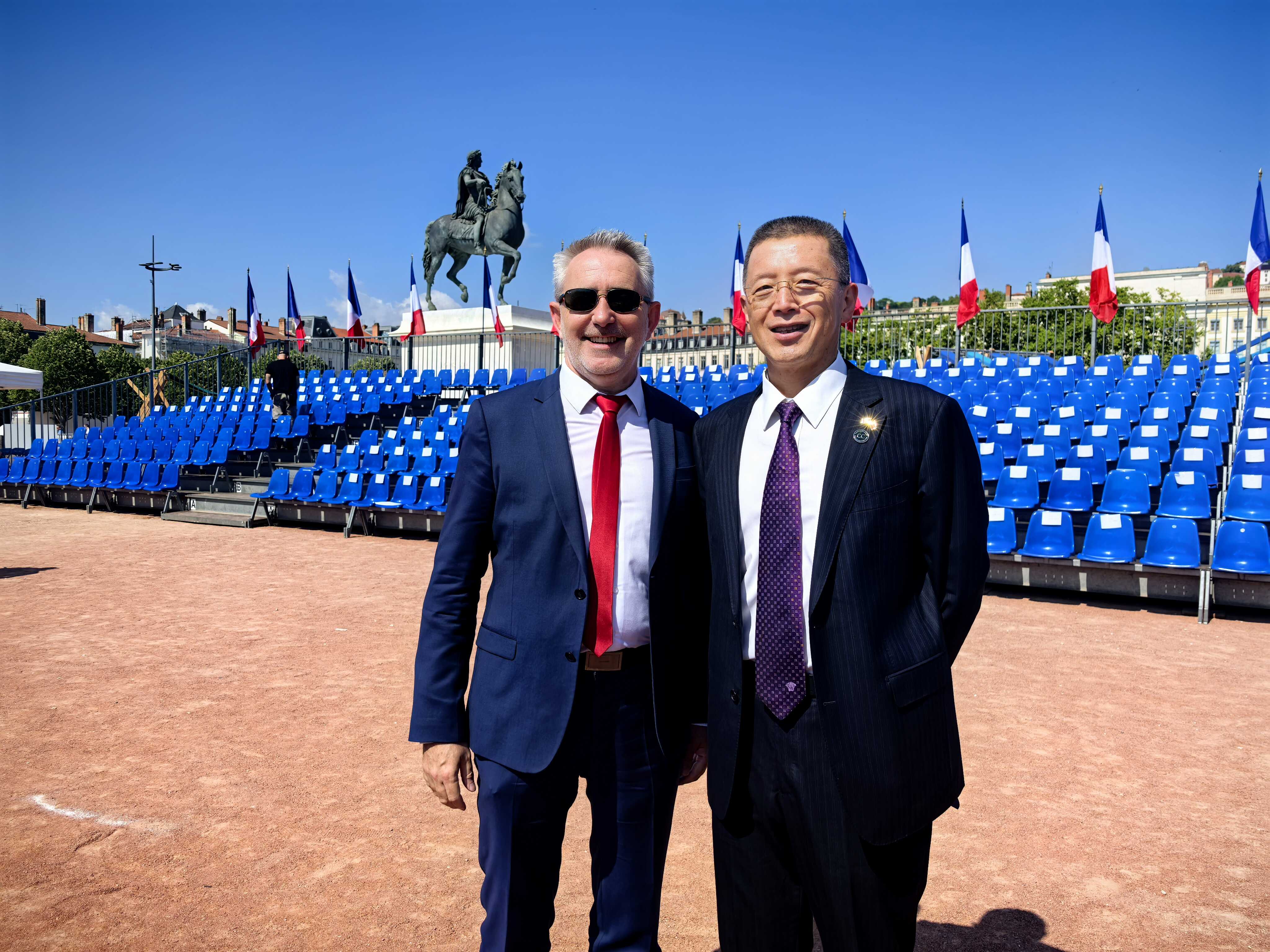 2025年7月14日,驻里昂总领事于江应邀出席在里昂市中心举行的法国国庆节阅兵仪式。奥罗阿大区行政长官布乔、里昂市长杜塞、里昂军事长官密斯托拉中将、奥罗阿大区宪兵司令马里耶蒂中将、大区行政长官外事顾问黎楷、里昂六区副区长布伦及驻里昂各国领事官员等当地各界人士出席。